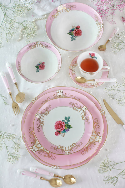 6 x Dinner Plate, 6 x Dessert Plate, 6 x Tea Cup. 6 x Tea Saucer, 6 x Cereal Bowl,